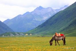 玉科草原位于四川甘孜州道孚县境内,距县城65千米,融蓝天、白云、雪山、林木、草原、溪流为一体,被誉为“康巴阿勒泰”。玉科草原面积大而平坦,间以森林,十分迷人,是极为罕见的天然画卷。号称“高原花园”的玉科草原上,矗立着