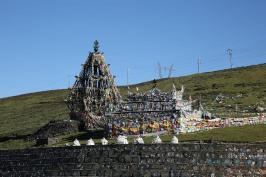 折多山位于四川省甘孜州,海拔4270米,是康巴第一关。 折多山的盘山公路确实是九曲十八弯,来回盘绕就象"多"字一样,拐了一个弯,又是一个弯,难怪当地人有句话叫:“吓死人的二郎山,翻死人的折多山”。
