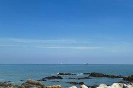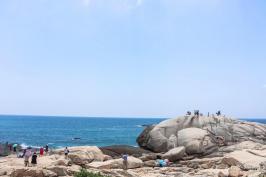 游览后我们来到今晚住的海湾【日月湾】,日月湾依山傍水,北面有山岭环抱,南濒南海,是个半月形的海湾,海湾沙滩洁白松软细柔,海面风平浪静,海水湛蓝清澈,适宜游泳,是个天然海水浴场,更是中国著名的冲浪胜地。