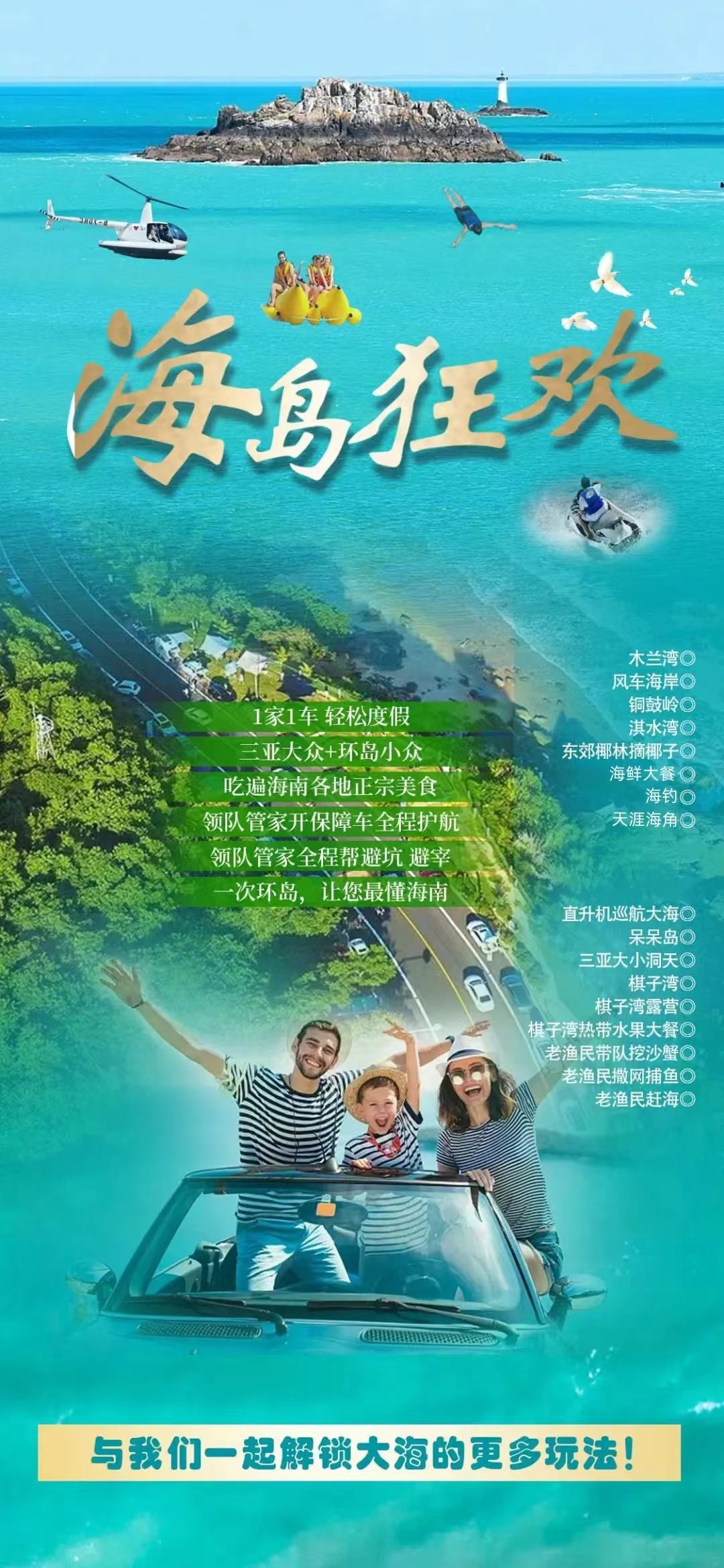【海岛狂欢】海南环岛7天6晚自驾:海岛直升机-海钓-挖沙蟹-拉网捕鱼-豪华酒店-海鲜大餐-小众景点-