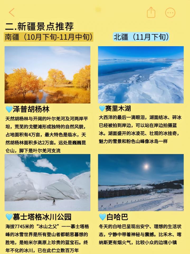 秋冬季节新疆旅行景点推荐: