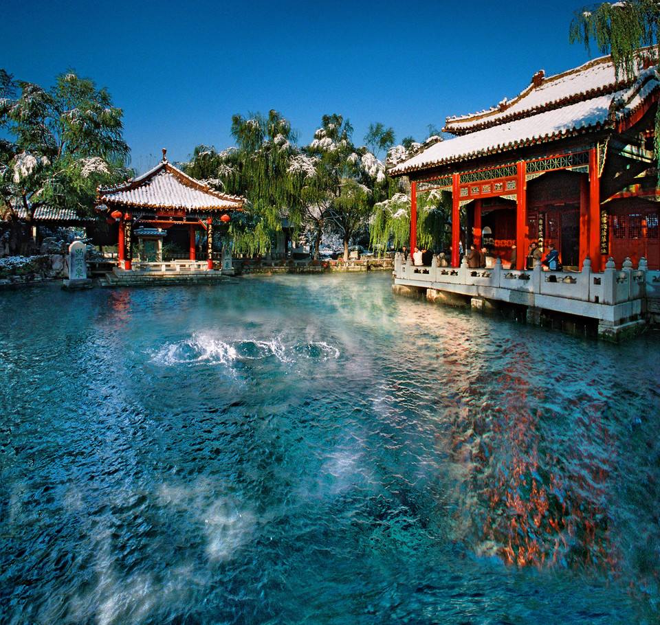 济南位于黄河之南、大明湖畔,自然风光秀丽,是著名的“泉城”,有72名泉,自古就有“家家泉水,户户垂杨”之誉。趵突泉为72泉之首,黑虎泉、五龙潭、珍珠泉也久负盛名。