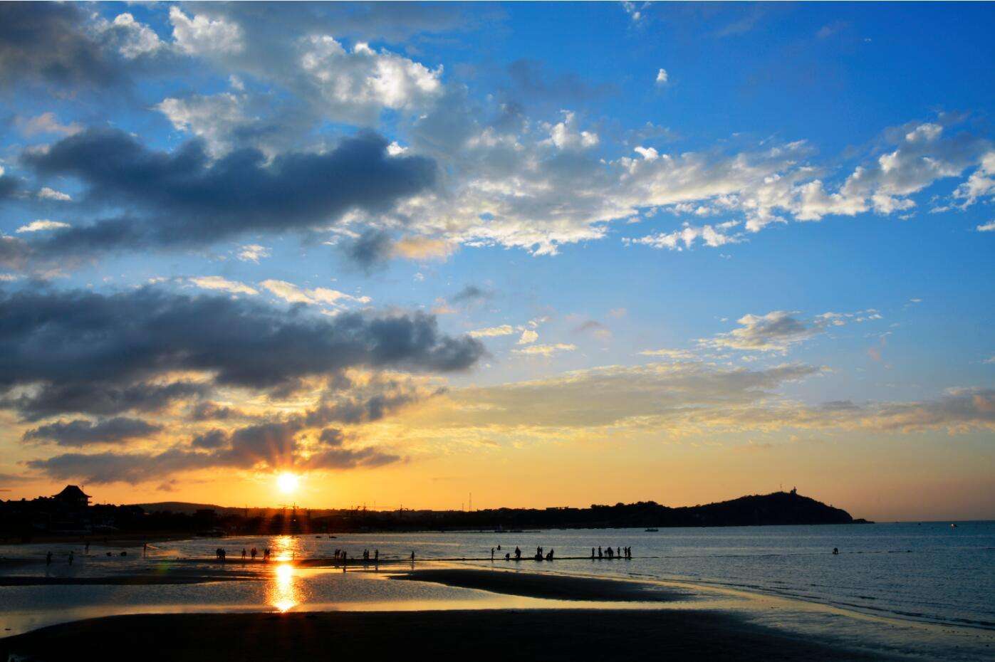 金沙滩位于青岛市黄岛区黄海之滨,呈月牙形东西伸展,全长3500多米,是我国沙质最细、面积最大、风景最美的沙滩,号称“亚洲第一滩”。 金沙滩景致怡人,海滨休闲、娱乐、餐饮、运动等各项旅游功能应有尽有。可观海景、做沙雕、放风筝、乘坐电瓶车游览沙滩岸线。