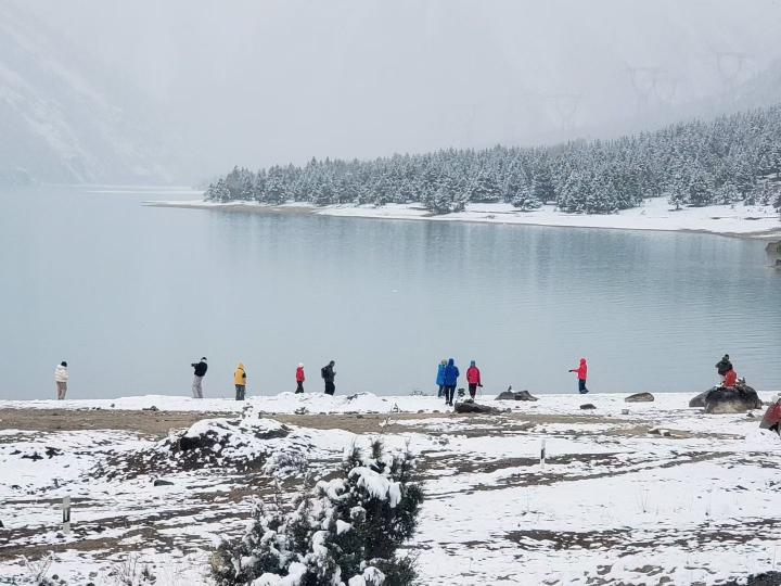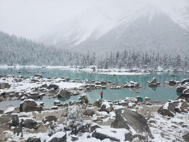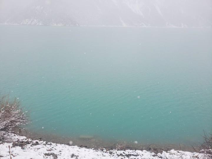 雪中的然乌湖真美,卓玛请我喝甜茶,吃土豆。每年的冬季都是然乌湖最美的季节。冬天下雪没有雨水带着泥沙流入湖中,湖水清澈湛蓝,纯净而美丽。