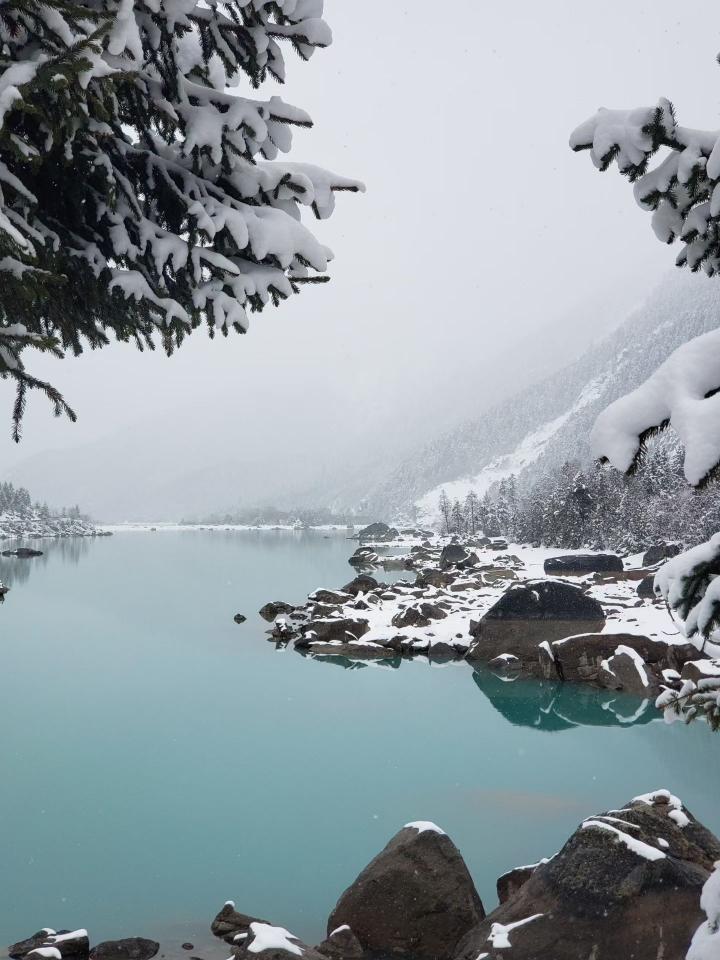 2026年3月底雪中的然乌湖,真美