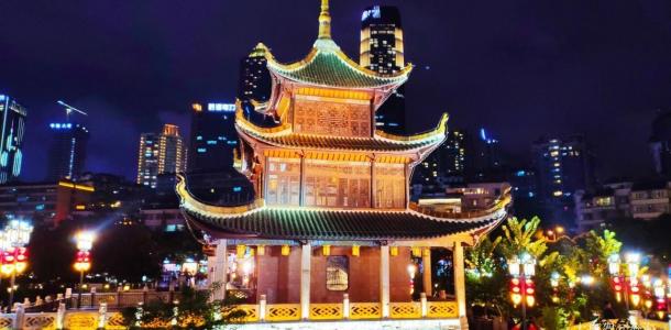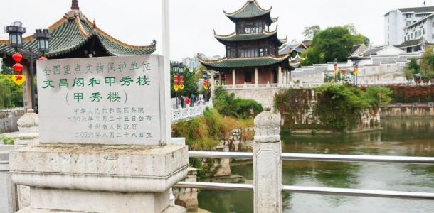 甲秀楼可谓是贵阳的标志了,始建于明朝,后楼毁重建改名“来凤阁”,凡是来过贵阳的人都会登临观景,三层的小楼屹立在鳌矶石上,面前是流淌着的南明河。甲秀楼的夜景尤其漂亮,从远处望去,灯火辉煌。走过连接甲秀楼的浮玉桥,即