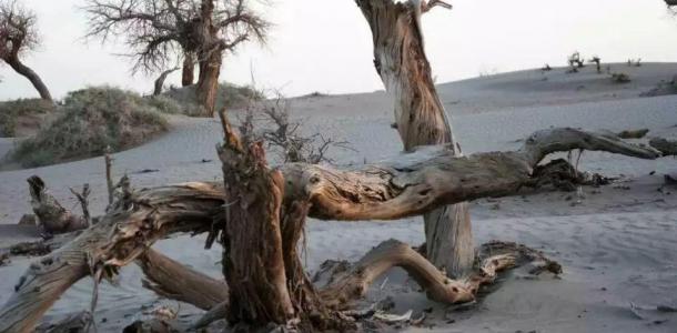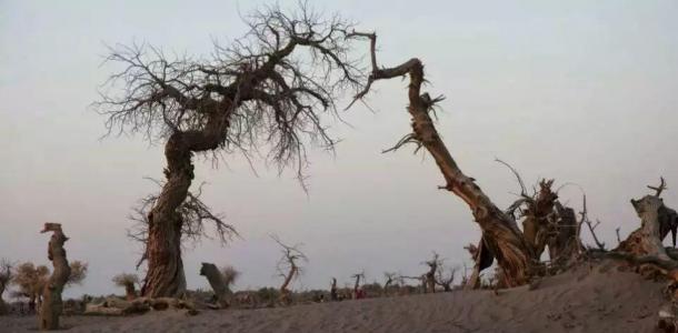 怪树林在额济纳旗达来呼布镇西南28公里处,所谓“怪树林”,是数百年前因自然灾害——极端的干旱而致成片的胡杨枯死,且干燥的环境让胡杨枯而不腐、挺立不倒,才使今人能观赏到形状各异的胡杨造型。