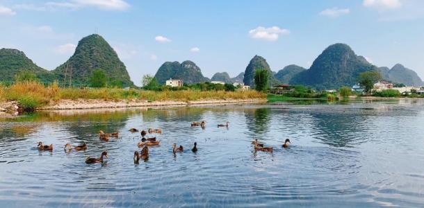 遇龙河是漓江在阳朔境内最长的一条支流,整个遇龙河景区,没有任何所谓现代化建筑,没有任何人工雕琢痕迹,没有任何一点都市喧嚣,一切都是那么原始、自然、古朴、纯净,实为桂林地区最大的纯自然山水园地。如果把漓江比成“大家