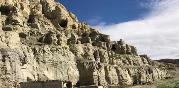 东嘎洞窟和皮央洞窟就在东嘎村和相邻的皮央村附近的土石山崖上,这是西藏迄今为止发现的最大一处佛教石窟遗址。集中在半山腰的3个洞窟中的东嘎壁画保存得较好。