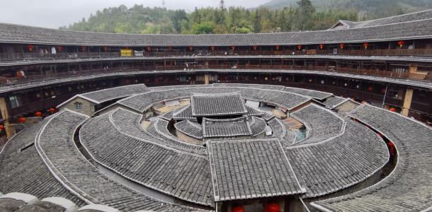 承启楼位于福建省龙岩市永定区,是永定土楼之王,其规模巨大,造型奇特,古色古香,充满浓郁的乡土气息。“高四层,楼四圈,上上下下四百间;圆中圆,圈套圈,历经沧桑三百年”。