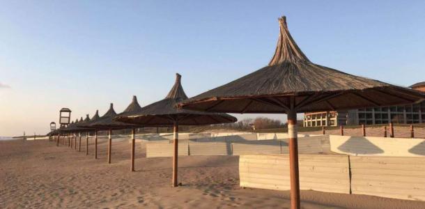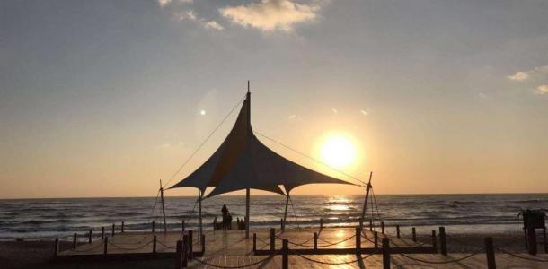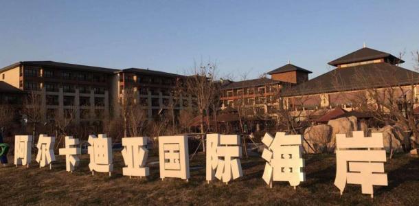 北戴河阿尔卡迪亚滨海度假酒店后面的专属海滩。