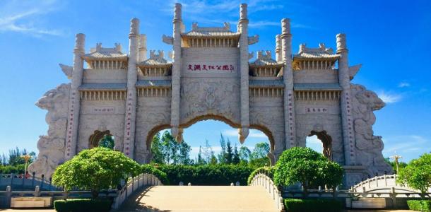 临高文澜文化公园位于海南省临高县,这里的牌坊由南向北一字排开,实在蔚为壮观。无论从牌坊的数量,牌坊的设计,还是牌坊的质量、文化艺术价值,都堪称我国牌坊之最。每一个牌坊正面和背面都分别选用了从古至今各朝各代的名对。