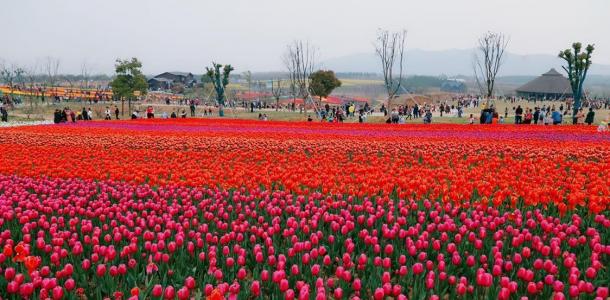 早餐后前往赏花秘境-响水涧。我们一起走进乡间小道,漫步山水之间,享受花开成海的盛况。下午赶往巢湖郁金香高地。这里山岳绿植,花草相间,尽情欣赏美景。