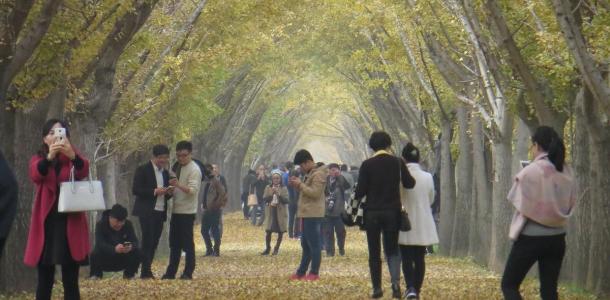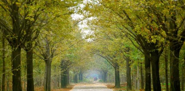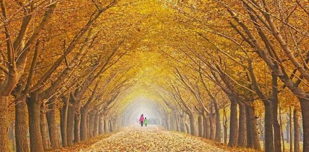 银杏时光隧道长约3公里,道路两侧的银杏枝繁叶茂,树冠相交像一条隧道,每到秋季,隧道一片绚烂金黄,地上铺满落叶,摄影爱好者端着长枪短炮前来取景。最佳观赏时间是11月上中旬,最佳观赏点在道路的南北两头或中间地段,可以用长