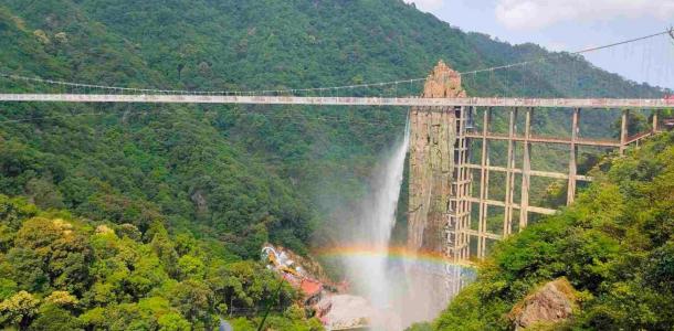 云门山玻璃桥是广东省首座全透明高空玻璃桥,桥面全部采用透明玻璃铺设,整个工程无钢筋混凝土桥墩。玻璃桥体全长316米、宽2.8米,可同时容纳500人。