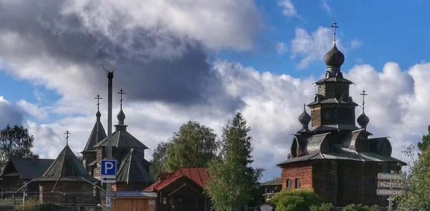 1968年所建成的木造建筑博物馆,整个博物馆是露天的,其中有从附近各地搬迁来的古代俄罗斯民居木屋,还有冬天教堂、夏天教堂,商店,一旁还有传统水井、水车、以及磨面粉用的风车,就像是几百年前的俄罗斯小镇重现眼前一样。