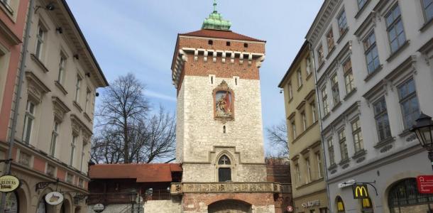 弗洛瑞安城门是老城主街上的一座古老城门,也是克拉科夫老城的标志性建筑之一,建议和瓮城一道浏览,了解下克拉科夫的防御工程。弗洛瑞安城门建于1660年并于1694年进行翻新,那次翻新使得城门增高了一米。城门的塔楼高33.5米,有一个