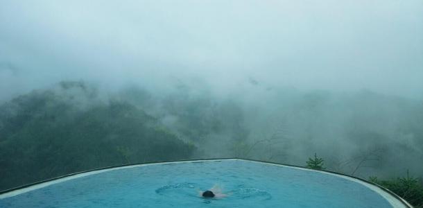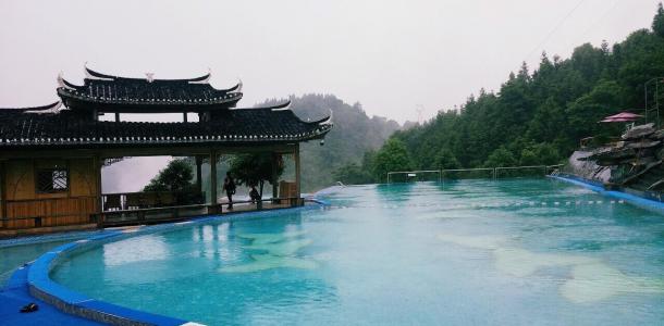 溆浦枫香瑶寨高山泳池在古寨右上角的山坡上,是风情独特的呈枫叶状的高山无边际泳池,也是湖南唯一一家带有无边的游泳池温泉。泉水自泳池上方一块突出的石头下流淌着到泳池里,张开嘴就可以喝到来自山涧峡谷岩缝的天然泉水,清甜