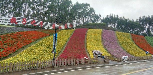 玛琪雅朵花海坐落在山重村仙灵旗山之巅,十里蓝山玛琪雅朵花海景致壮美,种植的各色草花、油菜花、三角梅、紫薇等花卉竞相开放,形成一望无际的色彩斑斓的风景线。玛琪雅朵花海以其富有浓郁欧洲风情的特有景观,为旅游文化重镇古