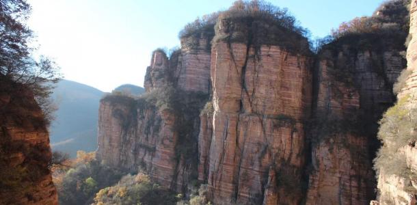 嶂石岩,国家级风景名胜区,位于石家庄西南的赞皇县境内(到赞皇县城52公里),距河北省省会石家庄市区约110公里,是太行山森林公园精华所在。其特色景点为大型天然回音壁。景区面积约120平方公里,站在景区最高点黄庵垴(海拔1774米