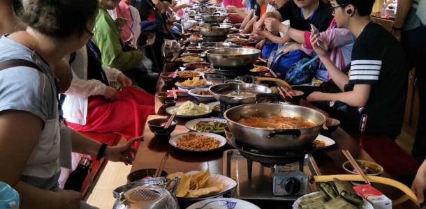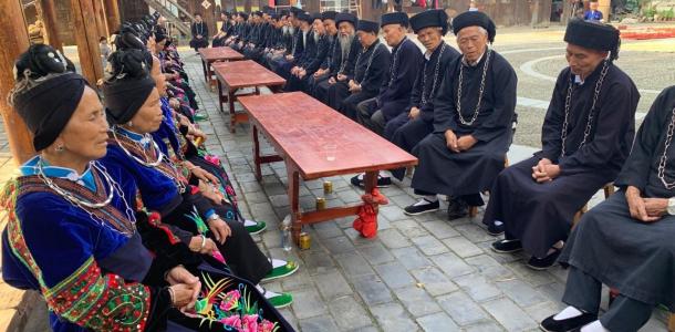 苗族千人长桌宴是苗族宴席的最高形式与隆重礼仪,已有几千年的历史。通常用于接亲嫁女、满月酒以及村寨联谊宴饮活动。左边是主人座位,右边是客人座位。主客相对,敬酒劝饮并对酒高歌。刨汤、腊拼、古藏肉、苗王鱼、白切鸡、野免