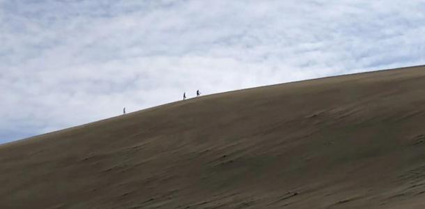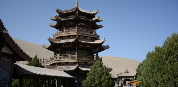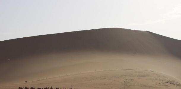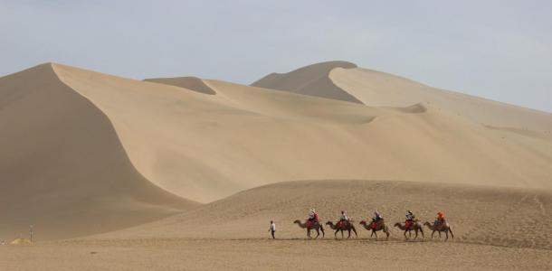 敦煌鸣沙山是国家级重点旅游风景名胜区,处于库姆塔格沙漠边缘,与宁夏中卫县的沙坡头、内蒙古达拉特旗的响沙湾和新疆巴里坤哈萨克自治县境内的巴里坤镇同为中国四大鸣沙山。沙峰起伏,人们顺坡滑落,便会发出轰鸣声,称为“沙岭
