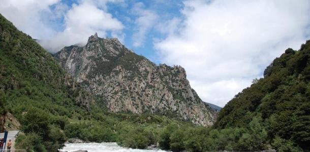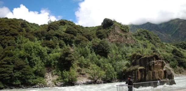 “中流砥柱”位于尼洋河中游,其所处在的位置山势险峻,陡象横生。石柱上长着一棵松树,并有多种植被装点,远处眺望,甚为壮观。因之奇特的造型和险要的位置,被当地人奉为神物,相传这块巨石是工布地区的守护神的座椅。