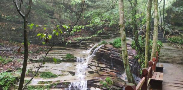 红豆谷风景区位于龙神沟至阳坝公路左侧的一个沟壑内,其中的一个悬崖上有五颗磨盘大小的石头相垒相叠,看似摇摇欲坠,实属稳固磐石,当地人称“五颗石”。溯溪前行,就是“一线天”,两座高约20米的石峰挤在一起,犹如巨石被拦腰璧