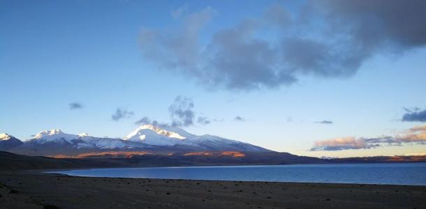 拉昂措位于阿里地区普兰县境内,人称鬼湖,藏语意为“有毒的黑湖”,虽与淡水的圣湖一路相隔,但为微咸水湖,因此其湖水人畜皆不能饮用,这大概便是“鬼湖”之名的由来。拉昂错湖周边空旷死寂人迹罕至,在她的西面勾画出一个美丽