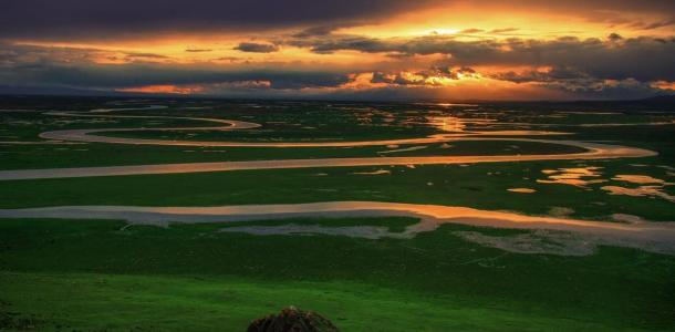 站在天鹅湖畔巴西里克山顶眺望,古老的开都河从天边缓缓向你走来。这就是“此景只应天上有,人间能有几回现”的九曲十八弯。它像是泉水和雪水汇聚而成的仙女的飘带穿过天鹅湖,更像是上苍为巴音布鲁克这个翡翠王国披上的圣洁的哈