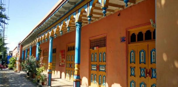库车王府位于新疆库车县城,是1759年清朝乾隆皇帝为表彰当地维吾尔族首领鄂对协助平定大小和卓叛乱的功绩,专门派遣内地汉族工匠建造而成。20世纪初,原“库车王府”仅存部分房屋和城墙,因而,2004年库车县政府投资1300万元,根据达吾