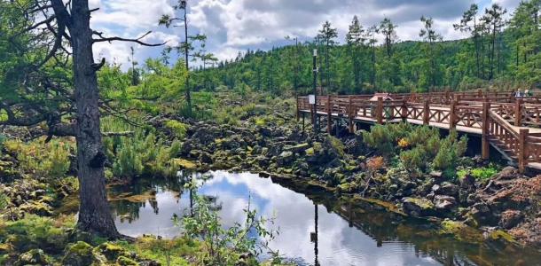 阿尔山石塘林,位于阿尔山天池东,距阿尔山市84公里,是大兴安岭奇景之一。为第四纪火山爆发的地质遗迹,是亚洲最大的近期死火山玄武岩地貌。石塘林长20公里、宽10公里,是由火山喷发后岩浆流淌凝成。