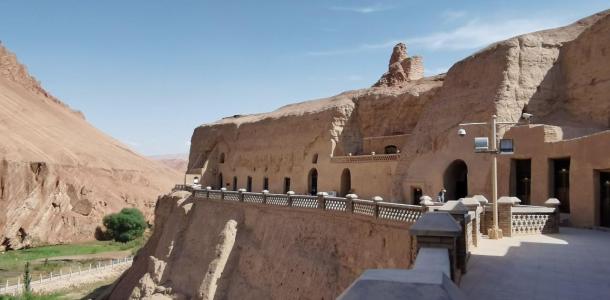 柏孜克里克千佛洞,位于新疆吐鲁番市东45公里火焰山上。凿有洞窟83个,现存57个。其中有壁画的40多个,总面积1200平方米,是吐鲁番现存石窟中洞窟最多,壁画内容最丰富的石窟群,是新疆境内较大的佛教石窟寺遗址之一。
