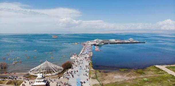 青海湖藏语名为“措温布”(意为“青色的海”)。位于青藏高原东北部、青海省境内,由祁连山脉的大通山、日月山与青海南山之间的断层陷落形成,是中国最大的内陆湖泊,也是青海省名称的由来。湖泊地域面积辽阔,环湖一圈约360公里