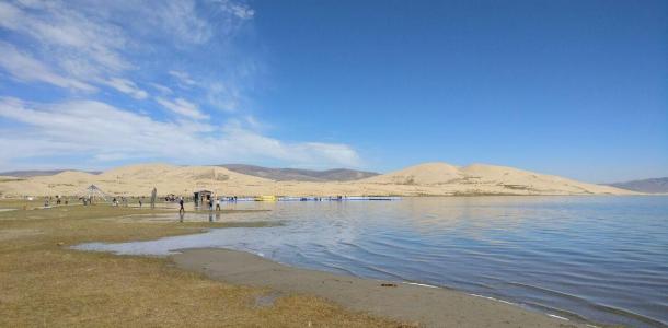 沙岛是青海湖中最大的岛屿,颇象一个新月型的沙岛景区,是湖中沙垄突出水面受湖浪堆积和风沙作用堆积而成的,恰似一个新月新型沙丘漂浮在水面上,为湖中的一大奇观。它与湖东岸连绵起伏的沙山,构成青海湖区独特的沙漠景观,与蓝