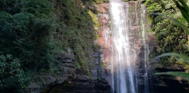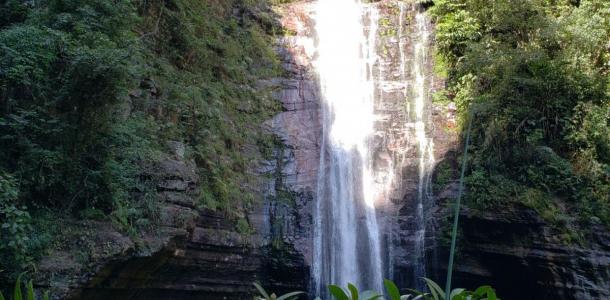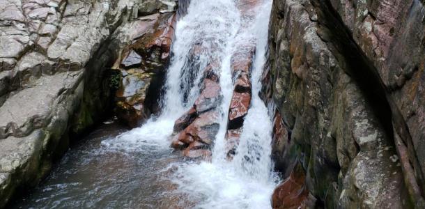 龙潭森林公园林中古树众多,瀑布成群(20多处瀑布,最大的高70多米,宽30多米,雄伟壮观;最小的也有10多米高,几米宽,丝丝相连,各具特色)。水源清澈见底、水量丰富,可直接饮用。进入龙潭村,有千亩桔园,一溪几渡,曲折迂徊,颇