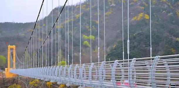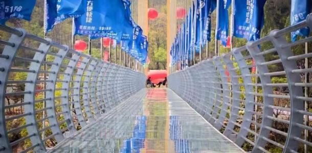 轿顶山7D鸿运玻璃桥是中原地区目前跨度最长、悬空最大、海拔最高玻璃吊桥,海拔高度1088米,跨度318米,离谷高度338米。玻璃桥悬于红石峰丛之间,两峰地势险峻、崖壁陡直,中间裂谷横穿。站在桥上,以别样的视角看脚下的世界,欣赏南