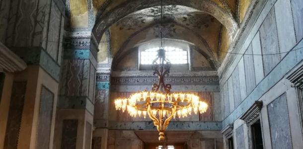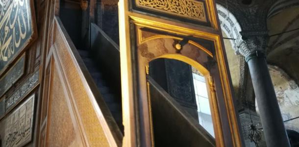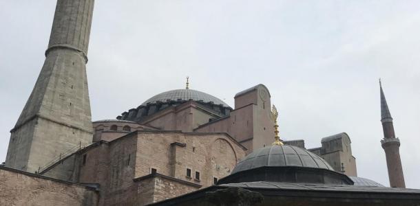 圣索菲亚大教堂与蓝色清真寺隔街相望,早期是拜占庭帝国的主教堂,后被土耳其人占领后改建成为清真寺,现为博物馆。这是一座土耳其著名的历史建筑,也是土耳其的象征之一。典型的清真寺外观圣索菲亚大教堂外部是典型的清真寺圆顶
