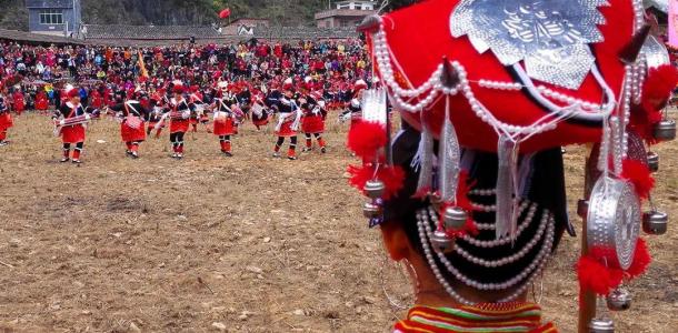 8:50抵达目的地油岭瑶寨,参加瑶族一年一度的盘王节“耍歌堂”活动;