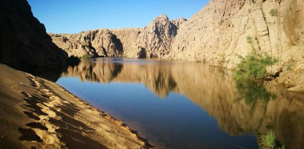 12:30途径阿拉善天池,爬过沙山、登上山顶远眺、探秘古人类狩猎峡谷;