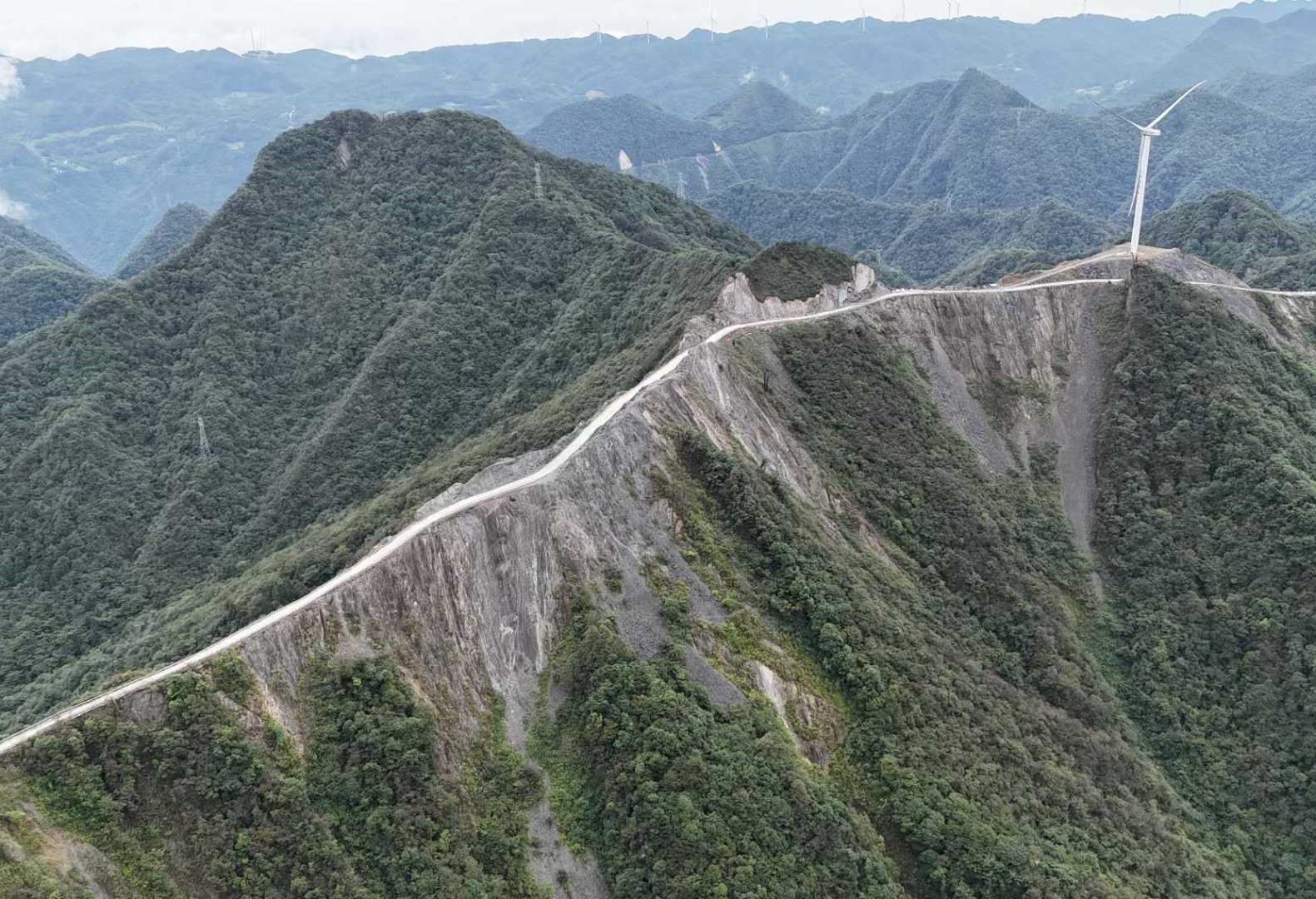 重庆市石柱县七曜山上,从六塘乡到大风门,有一段沿着山脊背修出的公路,两侧都是悬崖,公路就修建在山脊顶端,仿若“天路”。在此公路上开车,从空中俯瞰就像行驶在刀片上,步步惊心,既壮观又惊险。