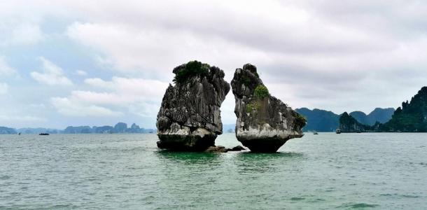 游船靠岸登陆【天堂岛】,天堂岛上山不在高,却是观看下龙湾全景最美丽的地方,登山顶,360俯瞰下龙湾,场景蔚为壮观;
