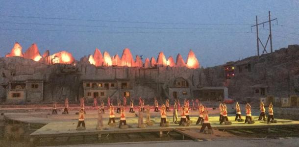 穿越结束后到达晋城入住酒店,晚上集体前往司徒小镇观看《千年铁魂》中国最具影响力煤铁硬派实景演出一场铁与火的演绎,表演时长45分钟,山水实景。