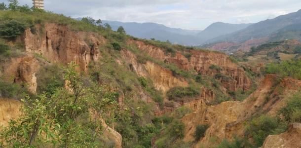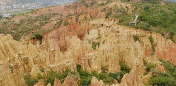 南涧土林是位于云南省大理州南涧县南涧河谷坝子周围的一处景区,共有西山脚、总府庄、营地等大小四、五个景点。粗看土林,一桩桩土峰似树、似塔、似笋、似幔,也象待发的航天火箭;细看土林,高低错落,纵横相连;高山巨流、小桥