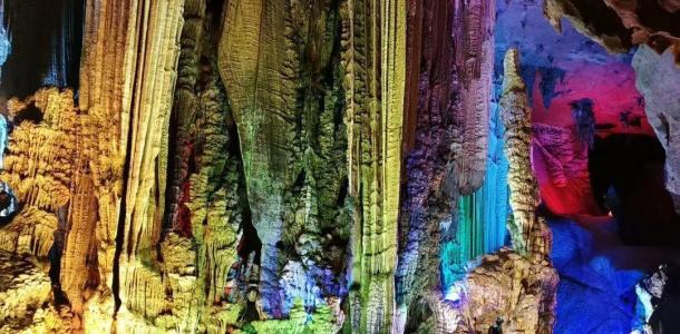 下午游览桂林最美溶洞—4A级景区【银子岩】,洞内的钟乳石,宛如夜空银河倾泻而下,闪闪发光的似银子、若钻石、似水晶,整个岩洞就象是用珍珠、玛瑙、黄金、钻石镶成一样,色彩斑斓、金碧辉煌,因此得来“游了银子岩,一世不缺钱”一说。