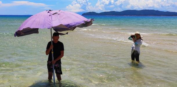 抵达【石梅湾】,这里被誉为海南现存未开发的最美丽海湾。港湾平时风平浪静,滨海沙滩长约7公里,近百米内水深不过3米。
