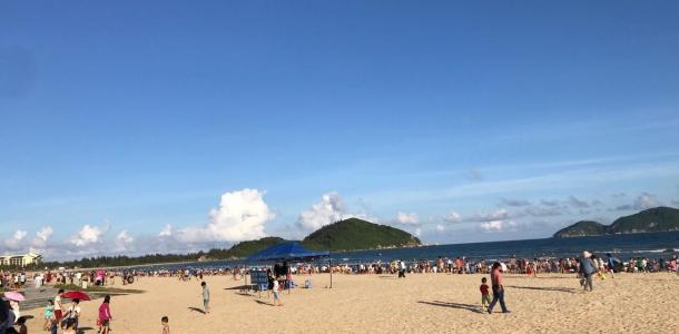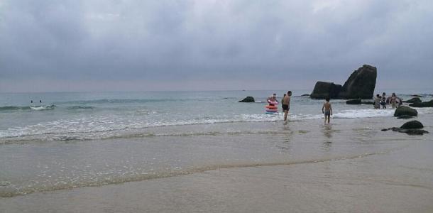 游览后我们来到今晚住的海湾【日月湾】,日月湾依山傍水,北面有山岭环抱,南濒南海,是个半月形的海湾,海湾沙滩洁白松软细柔,海面风平浪静,海水湛蓝清澈,适宜游泳,是个天然海水浴场,更是中国著名的冲浪胜地。