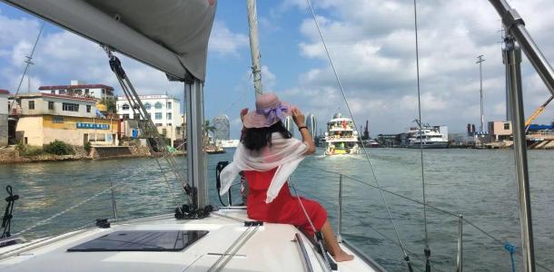 在三亚鸿州码头帆船港,扬帆出海,在蓝天白云下,听最纯粹的海浪声,帆船是集娱乐性、观赏性、休闲性于一体的海上运动项目。船上体验着帆船极速前行的速度,欣赏着蔚蓝海景的同时,内心会无比激动。在海南目前也就这两年才兴起非
