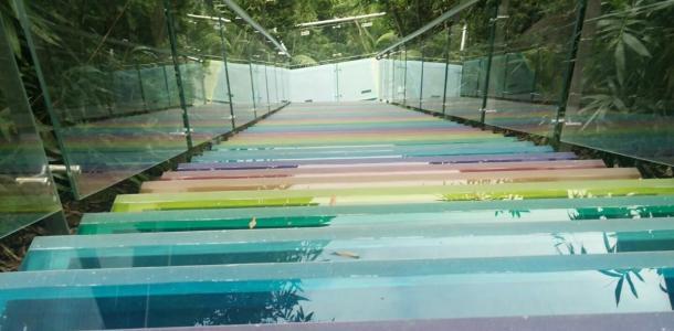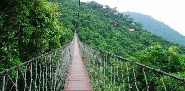 亚龙湾热带天堂森林公园位于三亚。亚龙湾热带天堂森林公园也是电影《非诚勿扰2》在海南的主要取景地,舒淇走过的吊桥,舒淇跟葛大爷住过的试婚房,无边泳池……园内分东园和西园,犹如伸展的双臂环抱着“天下第一湾”。登山探险游