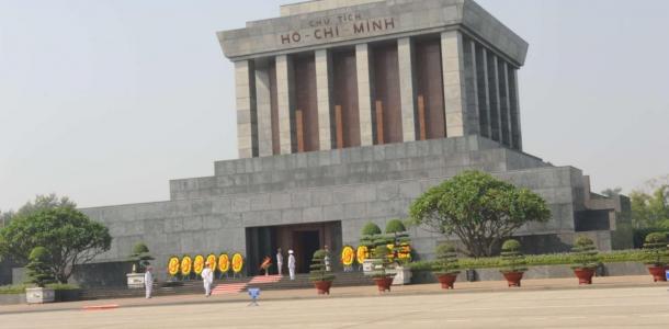 早餐后,车队统一加油后前往河内,参观中国驻越南大使馆外景、巴亭广场、主席府、胡志明故居、独柱寺、西湖,驾车游览河内市容。